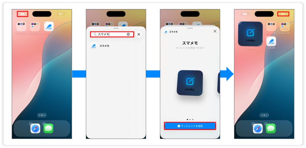 Step4 : ウィジェットから追加欄で「スマメモ」を見つける