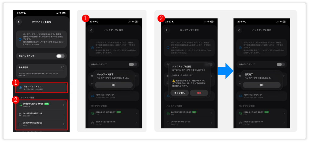 スマメモでは、バックアップと復元ができます。